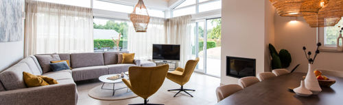 Das Haus ist stilvoll in einem frischen Insel- und Strandstil eingerichtet. Mit fünf komfortablen Schlafzimmern, ausgestattet mit hochwertigen Boxspringbetten, bietet die Villa ausreichend Platz für alle. Drei moderne Badezimmer sorgen dafür, dass niemand warten muss, und zwei separate Toiletten bieten zusätzlichen praktischen Komfort.