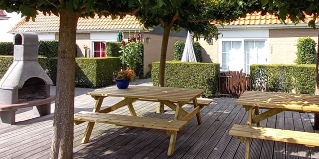 Die Terrasse ist windgeschützt, südlich ausgerichtet, abgegrenzt und hat einen direkten Zugang zum Innenhof, der mit einem Grill ausgestattet ist.