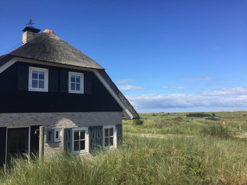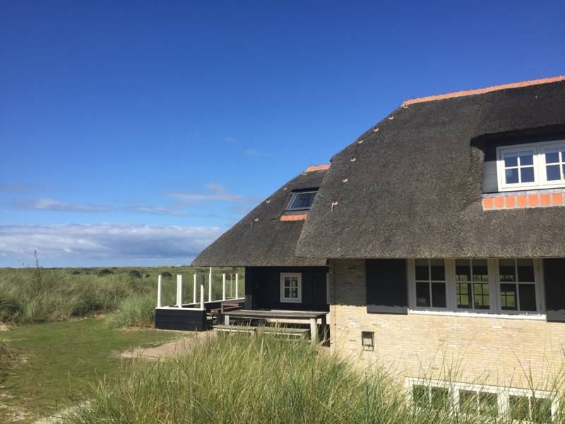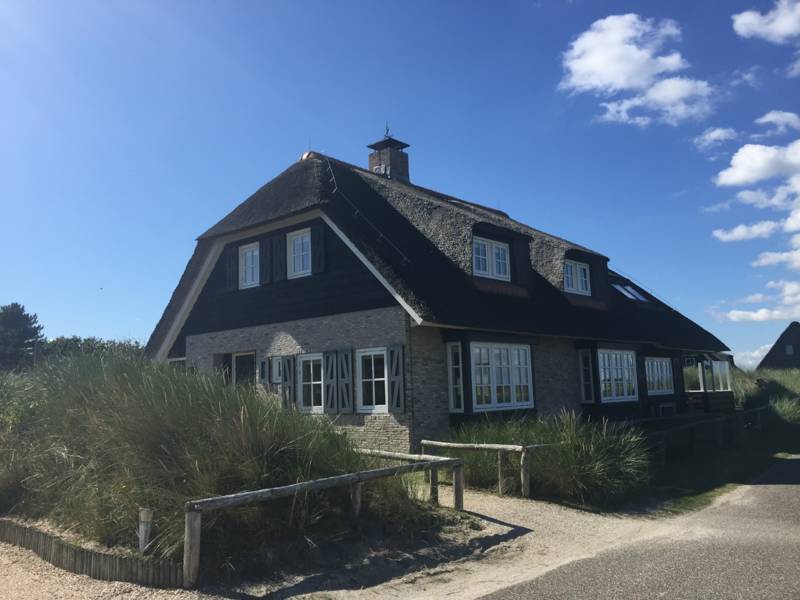 De Kwikstaart (Die Bachstelze, benannt nach den ersten Bewohnern, ein Bachstelzennest unter einem der Oberlichter) ist eine große (300 m2), komplett stilvolle, strohgedeckte Villa mit finnischer Sauna. Die Lage kann als geradezu einzigartig bezeichnet werden mit einem völlig unverbaubaren Blick über die Dünen bis hin zum Meer (Fußweg 800m). Bei der Gestaltung und Konstruktion dieser Dünenvilla wurde an jedes Detail gedacht.