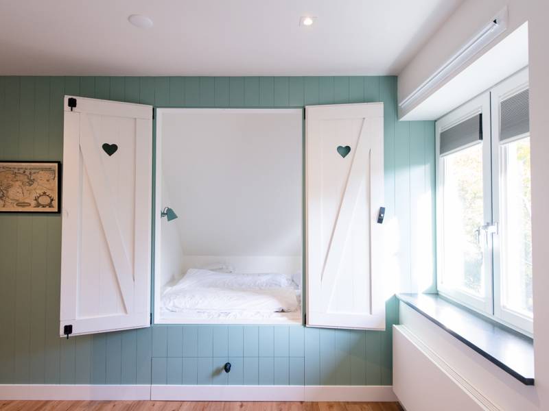 - 1x mit 2 Boxspringbetten (90 x 200 cm) und einer zusätzlichen Schlafmöglichkeit in Form eines geräumigen Alkoven (160 x 200 cm). Hier können 2 Personen schlafen.