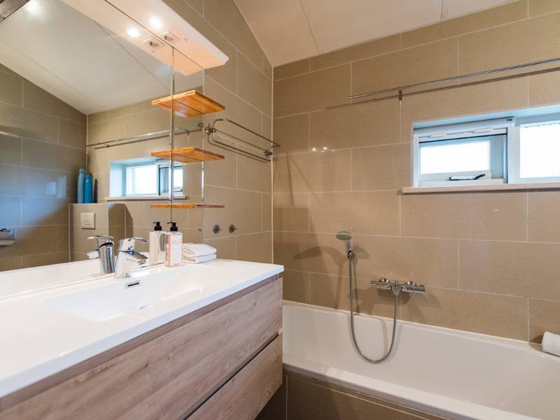 Das Badezimmer hat ein kleines Aussenfenster. Es ist geräumig, hat eine sehr große Dusche und eine zusätzliche Acryl-Badewanne. Ein Fön ist im Bad und jeweils in zwei Schlafzimmern vorhanden.