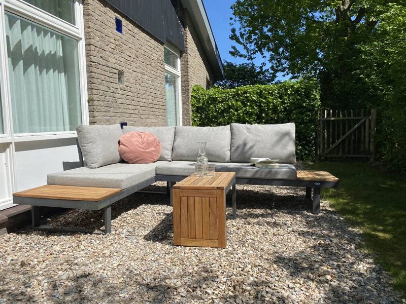 Durch das Wohnzimmer erreichen Sie die Terrasse mit einem schönen Picknicktisch und einem schönen Lounge-Sofa im Süden.